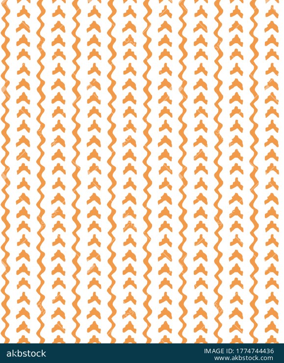 A clean seamless stripe pattern featuring repeating folk-inspired motifs arranged in vertical rows with soft wavy divider lines. The warm amber orange elements stand out beautifully against the light neutral background, giving the design a cheerful handcrafted character with a simple graphic appeal. Suitable for apparel fabrics, kurti linings, casual home décor textiles, wallpaper concepts, kidswear coordinates, and modern ethnic surface design collections.