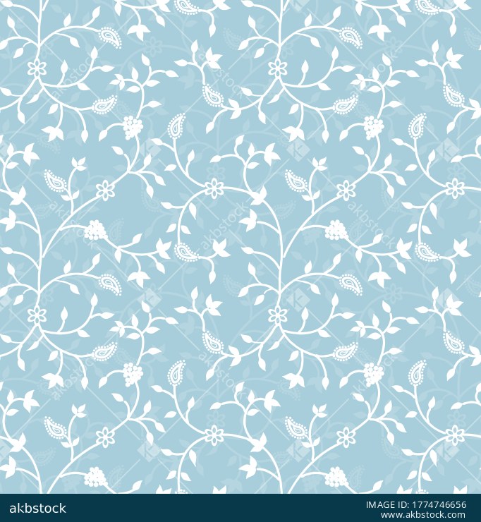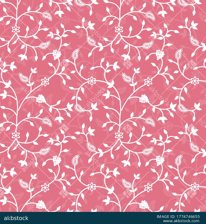 A graceful seamless floral vine pattern featuring flowing white leafy trails, tiny blossoms, and dotted paisley accents arranged across a soft blush pink background. The layered composition creates a light romantic surface with a refined ornamental feel, making the design suitable for apparel fabrics, kurti prints, dupatta concepts, blouse materials, wallpaper styling, and elegant home décor textiles.