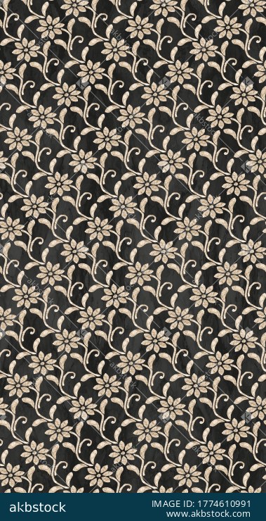 A refined seamless floral vine pattern featuring stylized daisy-like blossoms, curling tendrils, and elongated leaves arranged in a graceful allover layout. The light beige motif work stands out beautifully against the deep charcoal textured ground, creating a sophisticated contrast that feels both classic and contemporary. The subtle stone-like background adds extra depth and richness, making the design suitable for premium fashion and interior applications where buyers want a decorative non-bright floral with strong styling value. This pattern is ideal for kurtis, dresses, scarves, upholstery accents, curtains, cushions, wallpaper-inspired décor, and elegant home textile collections. A strong choice for buyers seeking a timeless floral repeat with clean ornamental flow, balanced movement, and upscale surface appeal.