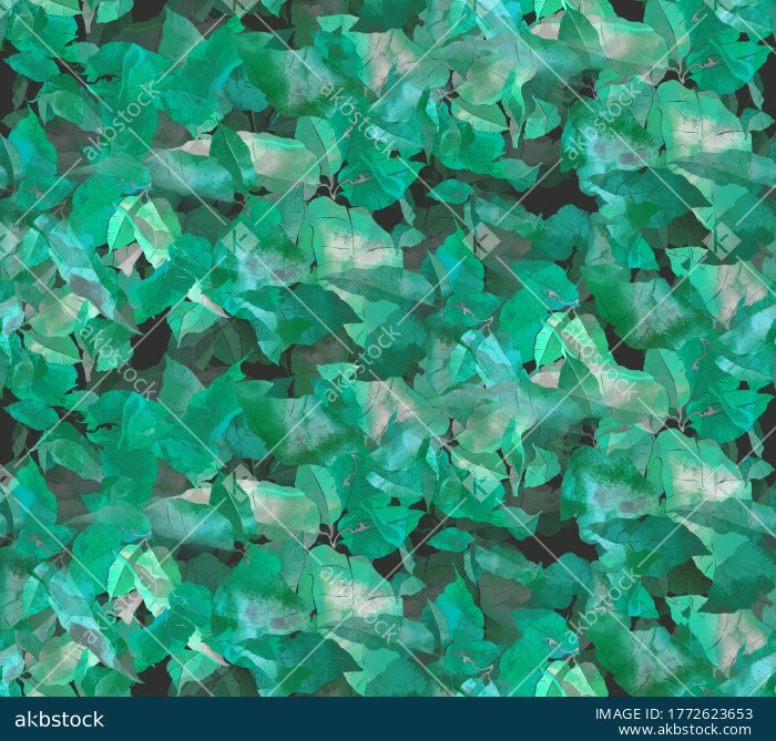 A seamless watercolor foliage pattern with layered leaves in emerald, aqua, teal, and mint tones, creating a fresh modern botanical camouflage effect. This design prints best with digital pigment printing on cotton, rayon, and viscose for apparel, and also looks premium on satin, crepe, and georgette for scarves and fashion accessories. Ideal for contemporary textiles, resort wear, activewear prints, wallpaper, wrapping paper, and surface pattern design projects.