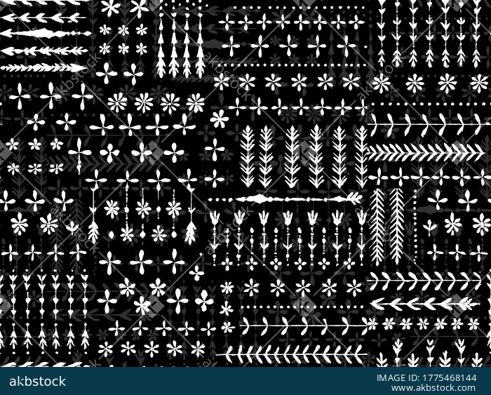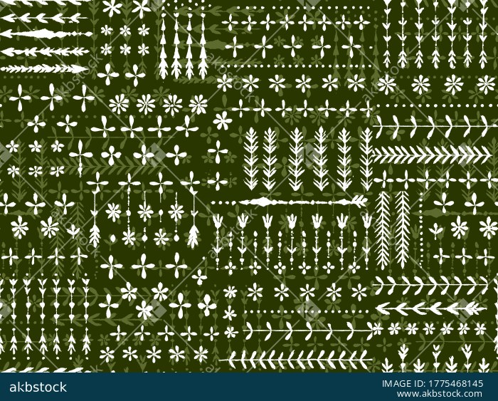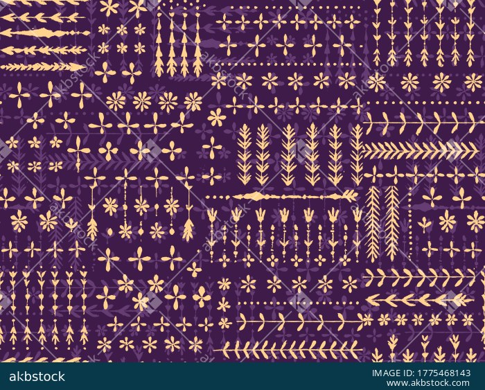 A distinctive handmade tribal border seamless pattern set featuring folk-inspired motif elements, linear ornamental bands, small floral symbols, dotted accents, and rustic botanical forms arranged in a structured repeat composition. This design carries a raw artisanal surface feel with a strong ethnic and decorative character, making it suitable for textile printing, ethnic apparel, home décor accents, craft-led collections, border-based fabric developments, and boutique surface design applications. The pattern is presented as a coordinated multi-colorway set, allowing buyers to choose different moods while retaining the same handmade tribal identity. Its balanced arrangement of repeated symbols and border elements gives it strong potential for traditional fashion textiles, decorative fabric projects, artistic merchandise, and culturally inspired print collections.