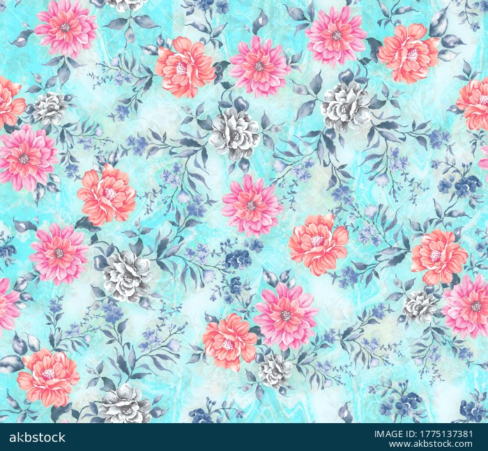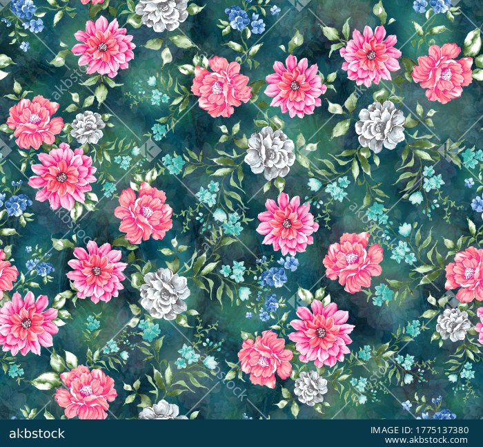 A beautifully crafted handmade seamless pattern collection featuring soft watercolor floral bouquets, layered blooming flowers and delicate leafy accents arranged in richly decorative allover layouts. This design family is presented in multiple color variations, including deep jewel tones, airy aqua pastels, artistic blended stripes and warm dark romantic backgrounds, giving the collection strong versatility for a wide range of textile uses. Ideal for women’s fashion, kurtis, dresses, scarves, home décor fabrics, bedding and premium surface design collections, these patterns offer elegant floral styling with a fresh painterly finish and strong commercial appeal.