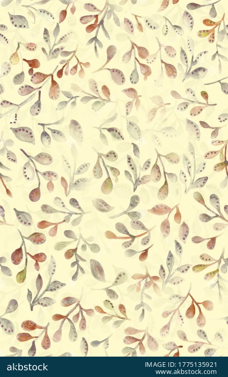 A beautifully crafted handmade seamless pattern collection featuring delicate watercolor leafy sprigs, tiny botanical branches and softly scattered natural motifs arranged in a light allover layout. The design is presented in multiple pastel color variations, giving it a fresh, airy and versatile surface appeal suitable for women’s fashion, kidswear, bedding, scarves, nursery décor, stationery and elegant home textile applications. Its gentle botanical styling, smooth repeat flow and commercially useful soft palettes make this collection ideal for refined fabric and surface design use.