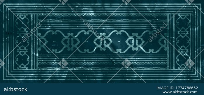 A striking dupatta design featuring a deep teal marbled ground enhanced with layered geometric borders, ornamental side panels, and a bold central decorative band. The rich tonal depth and refined symmetrical composition give this design a luxurious modern ethnic appeal, making it suitable for festive women’s wear, premium dupatta collections, statement fashion pieces, and elegant printed textile applications.