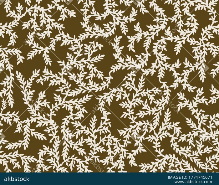 Midnight Ivory Leaf Vine Seamless Pattern with Dense Botanical Movement