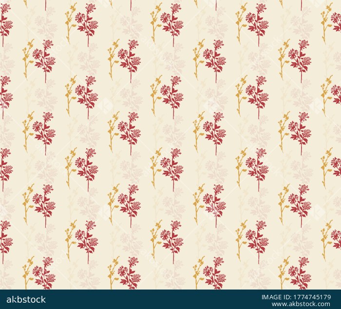 A refined seamless botanical stripe pattern featuring slender floral stems arranged in an elegant vertical rhythm across a soft cream background. The interplay of crimson red, muted saffron, and pale blush silhouettes creates a layered decorative look with a gentle handcrafted charm. Suitable for apparel fabrics, kurti materials, dupatta concepts, home décor textiles, wallpaper styling, and graceful surface design collections.