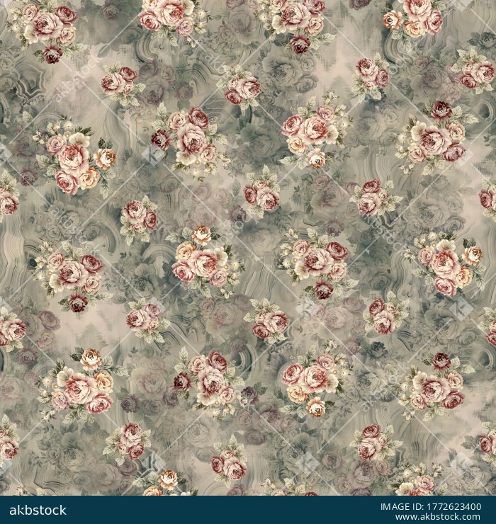 Smoky Grey Vintage Rose Bouquet Seamless Pattern with Mauve Florals and Soft Marble Texture Background