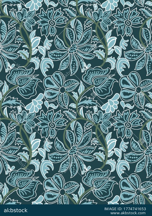 Midnight Teal Paisley Floral Seamless Pattern with Mustard Bloom Motifs