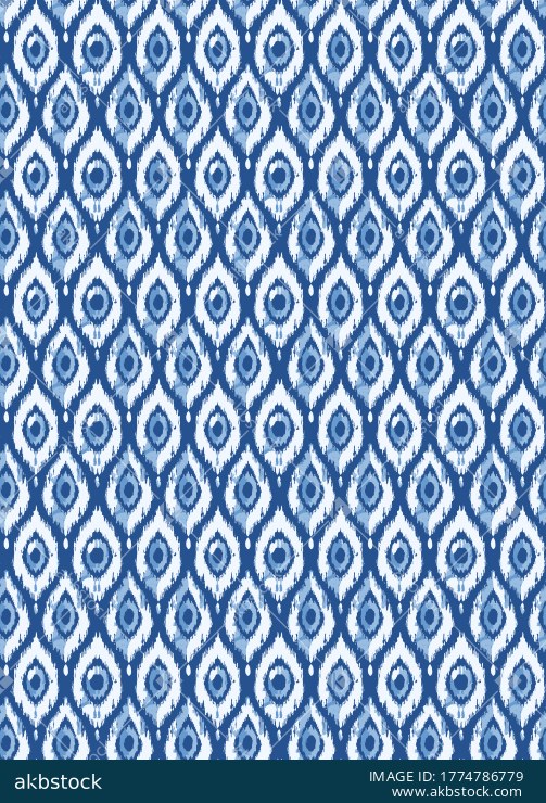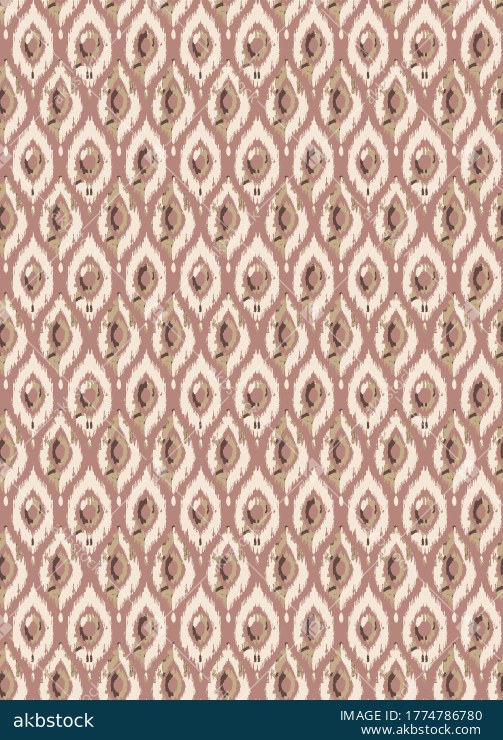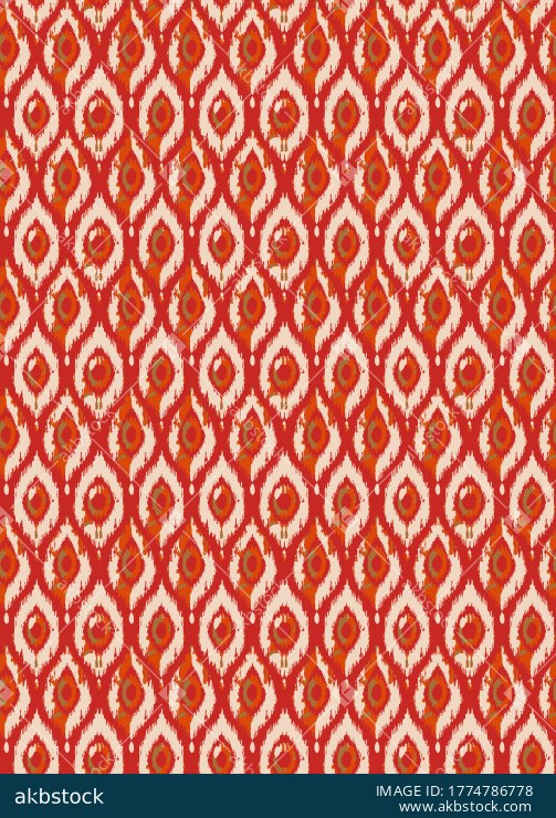 A bold seamless ikat pattern featuring repeated geometric diamond motifs with a handcrafted blurred edge effect in vibrant red, orange, and cream tones. The energetic ethnic layout and traditional woven-inspired character make this repeat design suitable for fashion fabrics, home décor textiles, cushions, wallpapers, accessories, and striking surface pattern applications.